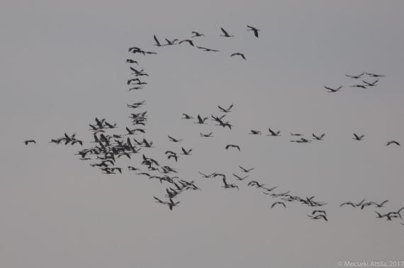A gyalogtúra során több darucsapat, nyári lúd és nagy lilik vonult át felettünk, amely a szikes tavakhoz érkezett pihenni. Az egyik ilyen csapatban Laposa Dávid kiszúrt egy ritka apácaludat. Ennek az északi tundrákon költő lúdfajnak minden évben feltűnik egy-egy példánya nagy lilikek közé vegyülve. A ritka madarat próbáltuk távcsővel követni az égen, de ahogy ereszkedtek be a tóra sajnos szem elől tévesztettük, így nem sikerült leszállva visszatalálni.