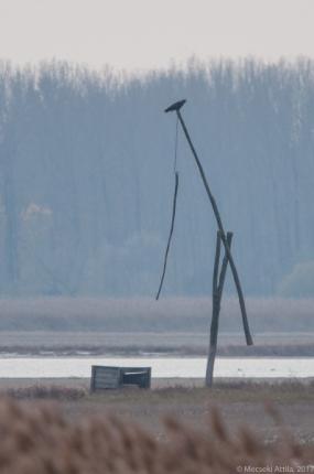 A tó mellett a vízimadarakat figyelve egy öreg hím kékes rétihéja siklott alacsonyan mellettünk, amely igen impozáns madárfaj kékesszürke tollazatával és fekete kézevezőivel. Visszaindulás előtt Bajor Zoli kiszúrt egy öreg parlagi sast, amely a tó mellett álló gémeskútra szállt fel pihenni. A pár száz méterre ülő madárban sokáig gyönyörködhettünk.