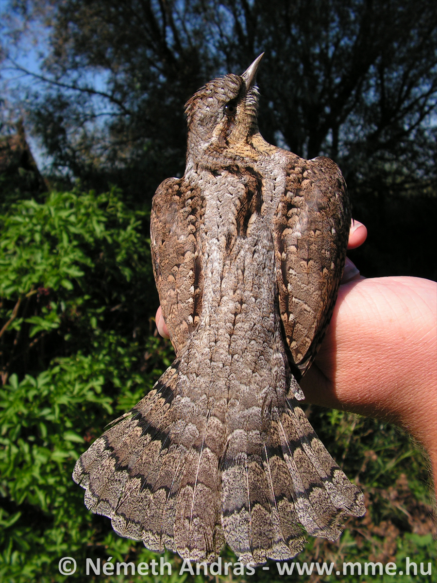Eurasian Wryneck Status and Occurence Distribution and Trends Distribution in Hungary Population trend Information about the graph: Bird Atlas of Hungary Ringing data Protection Odúk és költőládák >> Itató és madárfürdő >> Media Links BirdLife fact sheet >> 2015 European Red List assessment (PDF) >> Xeno-canto bird sounds >> PreviousNext Name and code Hungarian name Nyaktekercs Scientific name Jynx torquilla English name Eurasian Wryneck EURING code 08480 HURING code JYNTOR Body length (cm) 16-17 Weight of male (g) 30-45 Weight of female (g) 30-45 Wingspan (cm) 25-27 Taxonomy Order Harkályalakúak Piciformes Family Harkályfélék Picidae Protection Legal protection in Hungary protected Nature conservation value (HUF) 50.000 HUF Red list (global) LC – Least Concern Red list (Europe) LC – Least Concern Red list (EU) LC – Least Concern