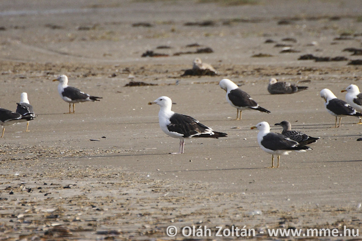 Great Black-backed Gull Status and Occurence Ringing data The species was not ringed or recovered in Hungary. Media Links BirdLife fact sheet >> 2015 European Red List assessment (PDF) >> Xeno-canto bird sounds >> PreviousNext Name and code Hungarian name Dolmányos sirály Scientific name Larus marinus English name Great Black-backed Gull EURING code 06000 HURING code LARMAR Body length (cm) 64-78 Weight of male (g) 1290-2272 Weight of female (g) 1033-2085 Wingspan (cm) 150-165 Taxonomy Order Lilealakúak Charadriiformes Family Sirályfélék Laridae Protection Legal protection in Hungary protected Nature conservation value (HUF) 25.000 HUF Red list (global) LC – Least Concern Red list (Europe) LC – Least Concern Red list (EU) NT – Near threatened