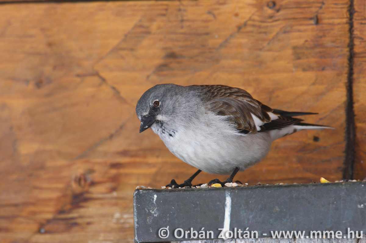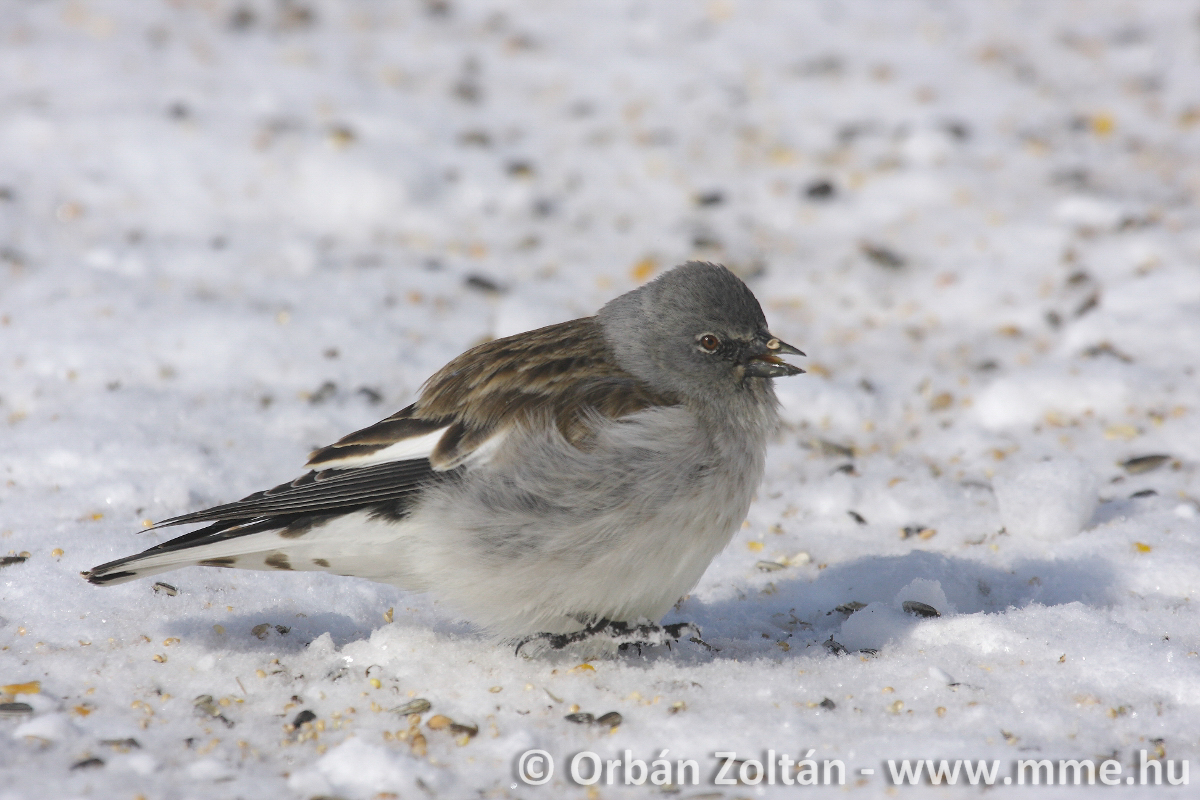 Snow Finch Status and Occurence Ringing data The species was not ringed or recovered in Hungary. Links BirdLife fact sheet >> 2015 European Red List assessment (PDF) >> Xeno-canto bird sounds >> PreviousNext Name and code Hungarian name Havasipinty Scientific name Montifringilla nivalis English name Snow Finch EURING code 16110 HURING code MONNIV Body length (cm) 17 Weight of male (g) 35-45 Weight of female (g) 35-45 Wingspan (cm) 34-38 Taxonomy Order Verébalakúak Passeriformes Family Sparrows Passeridae Protection Legal protection in Hungary protected Nature conservation value (HUF) 25.000 HUF Red list (global) LC – Least Concern Red list (Europe) LC – Least Concern Red list (EU) LC – Least Concern