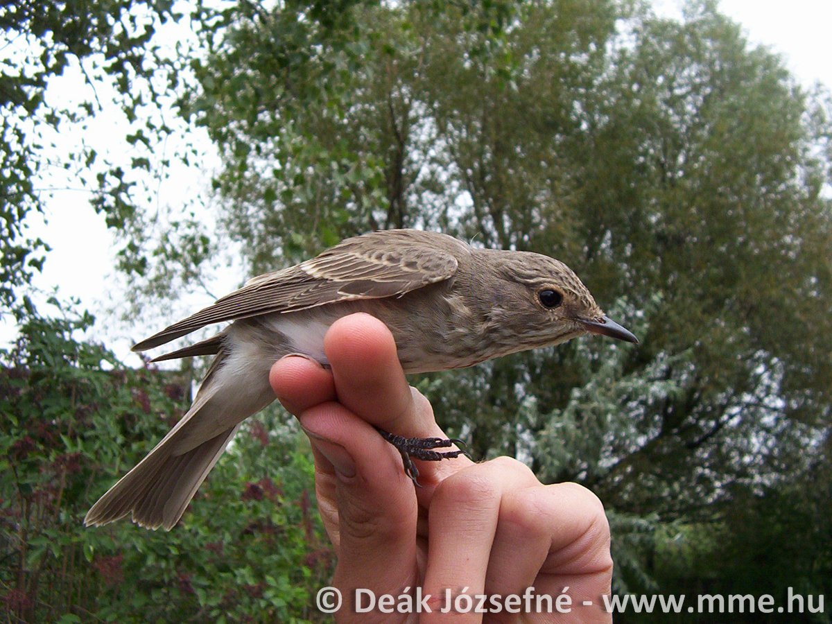 Spotted Flycatcher Status and Occurence Distribution and Trends Distribution in Hungary Population trend Information about the graph: Bird Atlas of Hungary Ringing data Media Links BirdLife fact sheet >> 2015 European Red List assessment (PDF) >> Xeno-canto bird sounds >> PreviousNext Name and code Hungarian name Szürke légykapó Scientific name Muscicapa striata English name Spotted Flycatcher EURING code 13350 HURING code MUSSTR Body length (cm) 14-15 Weight of male (g) 14-20 Weight of female (g) 14-20 Wingspan (cm) 23-26 Taxonomy Order Verébalakúak Passeriformes Family Légykapófélék Muscicapidae Protection Legal protection in Hungary protected Nature conservation value (HUF) 50.000 HUF Red list (global) LC – Least Concern Red list (Europe) LC – Least Concern Red list (EU) LC – Least Concern