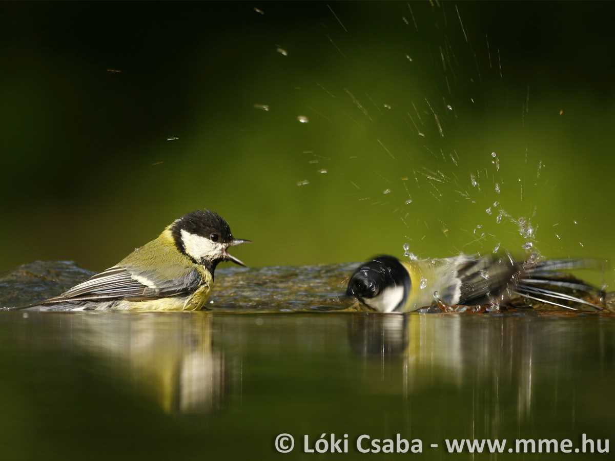 Széncinege itatóban fürdik (Videó: Orbán Zoltán).