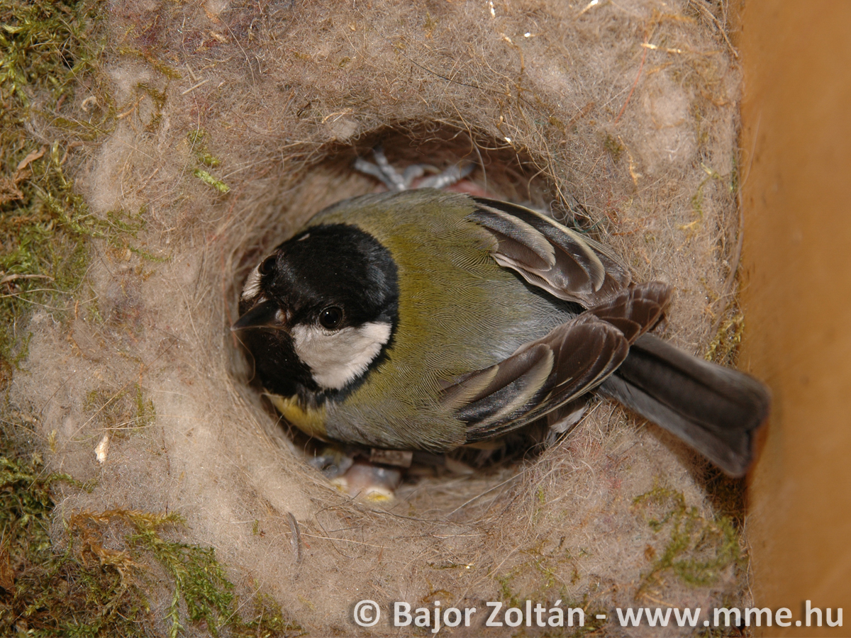 Széncinege fészekanyagot gyűjt (Videó: Orbán Zoltán).