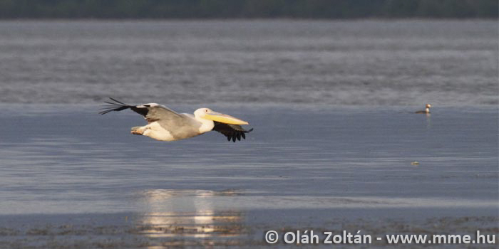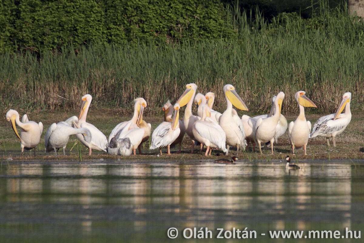Great White Pelican Status and Occurence Ringing data Links BirdLife fact sheet >> 2015 European Red List assessment (PDF) >> Xeno-canto bird sounds >> PreviousNext Name and code Hungarian name Rózsás gödény Scientific name Pelecanus onocrotalus English name Great White Pelican EURING code 00880 HURING code PELONO Body length (cm) 140-175 Weight of male (g) 11000 Weight of female (g) 10000 Wingspan (cm) 270-360 Taxonomy Order Gödényalakúak Pelecaniformes Family Gödényfélék Pelecanidae Protection Legal protection in Hungary strictly protected Nature conservation value (HUF) 250.000 HUF Red list (global) LC – Least Concern Red list (Europe) LC – Least Concern Red list (EU) LC – Least Concern Bird Protection Directive I. appendix