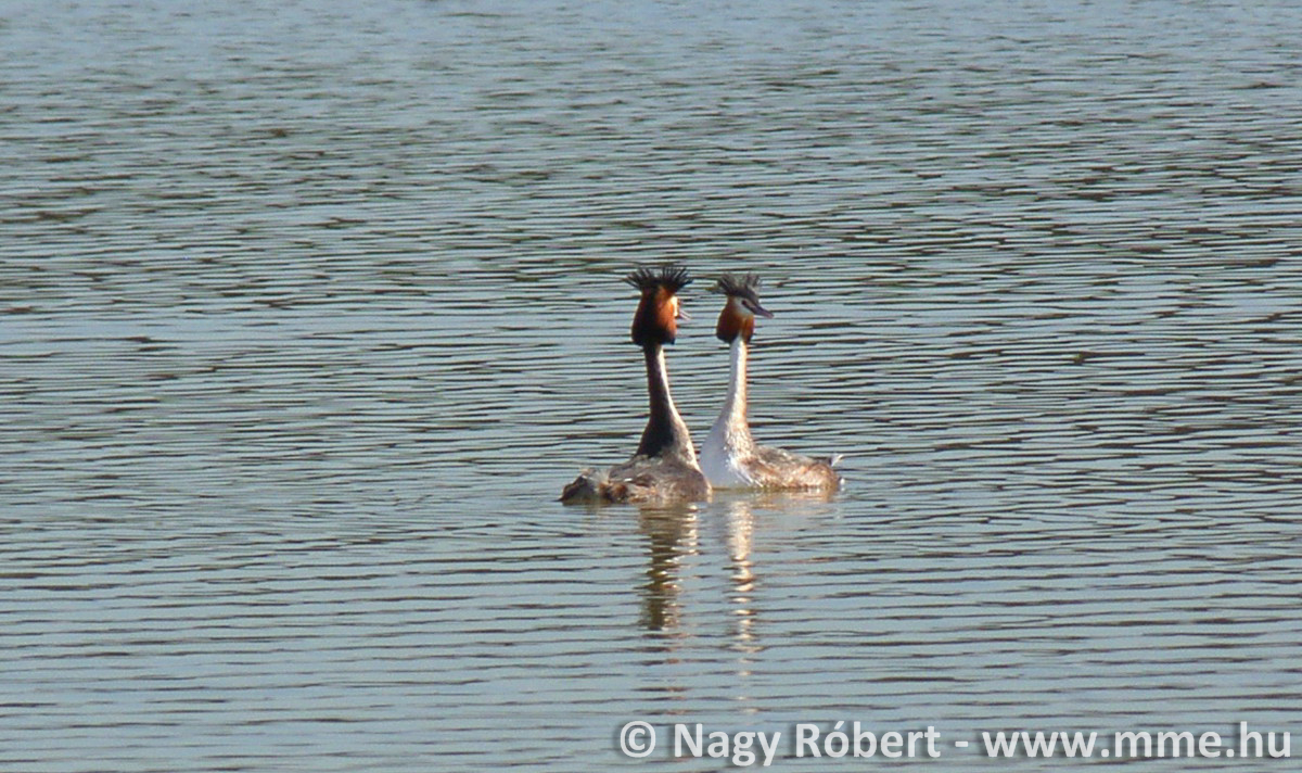 Great Crested Grebe Status and Occurence Distribution and Trends Distribution in Hungary Population trend Information about the graph: Bird Atlas of Hungary Ringing data Media Links BirdLife fact sheet >> 2015 European Red List assessment (PDF) >> Xeno-canto bird sounds >> PreviousNext Name and code Hungarian name Búbos vöcsök Scientific name Podiceps cristatus English name Great Crested Grebe EURING code 00090 HURING code PODTUS Body length (cm) 46-51 Weight of male (g) 600-1500 Weight of female (g) 600-1400 Wingspan (cm) 85-90 Taxonomy Order Vöcsökalakúak Podicipediformes Family Vöcsökfélék Podicipedidae Protection Legal protection in Hungary protected Nature conservation value (HUF) 50.000 HUF Red list (global) LC – Least Concern Red list (Europe) LC – Least Concern Red list (EU) LC – Least Concern