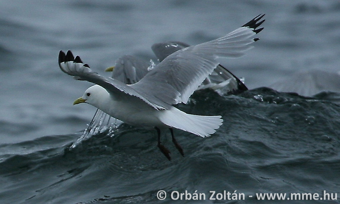 Black-legged Kittiwake Status and Occurence Ringing data Links BirdLife fact sheet >> 2015 European Red List assessment (PDF) >> Xeno-canto bird sounds >> PreviousNext Name and code Hungarian name Csüllő Scientific name Rissa tridactyla English name Black-legged Kittiwake EURING code 06020 HURING code RISTRI Body length (cm) 38-40 Weight of male (g) 350-500 Weight of female (g) 310-470 Wingspan (cm) 95-120 Taxonomy Order Lilealakúak Charadriiformes Family Sirályfélék Laridae Protection Legal protection in Hungary protected Nature conservation value (HUF) 25.000 HUF Red list (global) VU – Vulnerable Red list (Europe) VU – Vulnerable Red list (EU) EN – Endangered