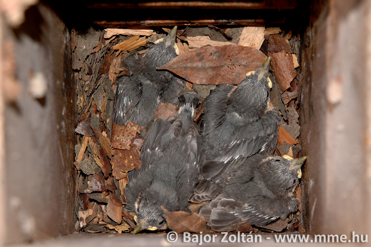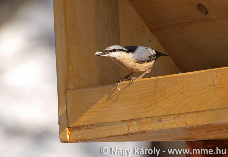 Az etető közelében kéregraktárt és kéregsatut használó csuszkák