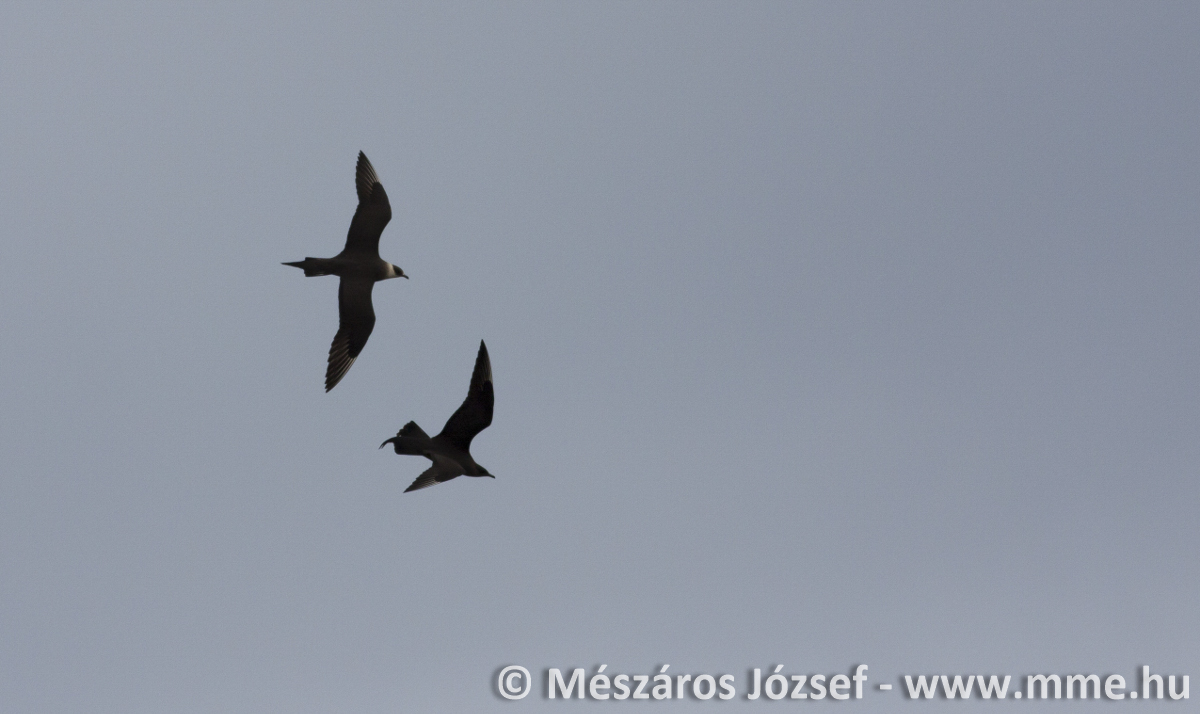Parasitic Jaeger Status and Occurence Ringing data The species was not ringed or recovered in Hungary. Media Links BirdLife fact sheet >> 2015 European Red List assessment (PDF) >> Xeno-canto bird sounds >> PreviousNext Name and code Hungarian name Ékfarkú halfarkas Scientific name Stercorarius parasiticus English name Parasitic Jaeger EURING code 05670 HURING code STECUS Body length (cm) 41-46 Weight of male (g) 330-570 Weight of female (g) 330-570 Wingspan (cm) 110-125 Taxonomy Order Lilealakúak Charadriiformes Family Halfarkasfélék Stercorariidae Protection Legal protection in Hungary protected Nature conservation value (HUF) 25.000 HUF Red list (global) LC – Least Concern Red list (Europe) EN – Endangered Red list (EU) EN – Endangered