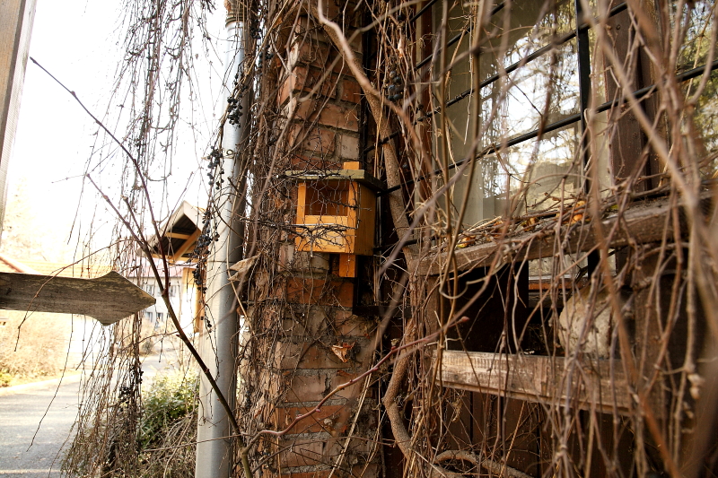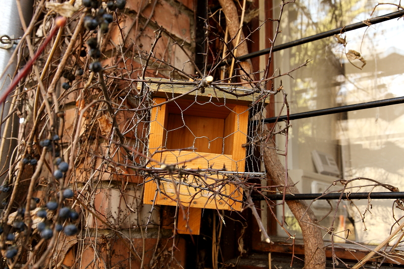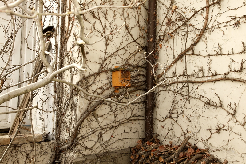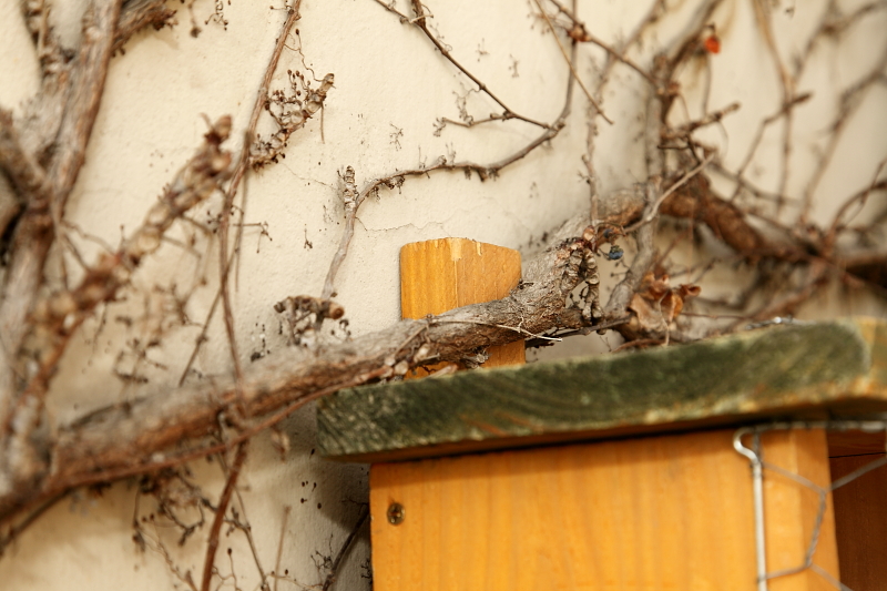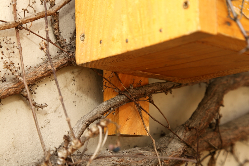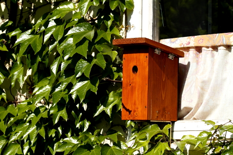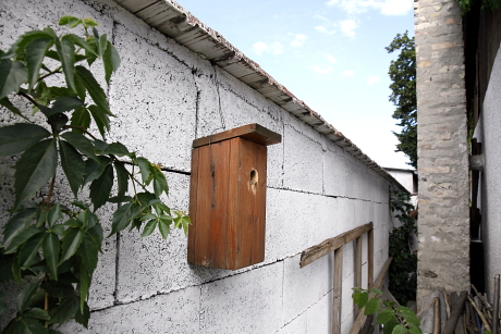 Az odútartó kampót a csupasz falra is felszerelhetjük, de a vadszőlővel, egyéb kúszónövénnyel befuttatott épületen a falfúrást is megspórolhatjuk.