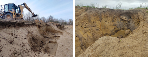 Idén tavasszal önkéntesek munkájával újítottuk meg Bagon az illegális cross-pálya területén található partfalakat, valamint Domony térségében egy másik partfalat. Mindkét területen gondot okoz a terepmotorozás, kvadozás és a terepjárózás, ezen tevékenységek ellen ebben az évben a partfalakon keresztülmenő, kivájt autónyomokat megástuk és helyben talált faanyagokból jelképes kerítést építettünk.