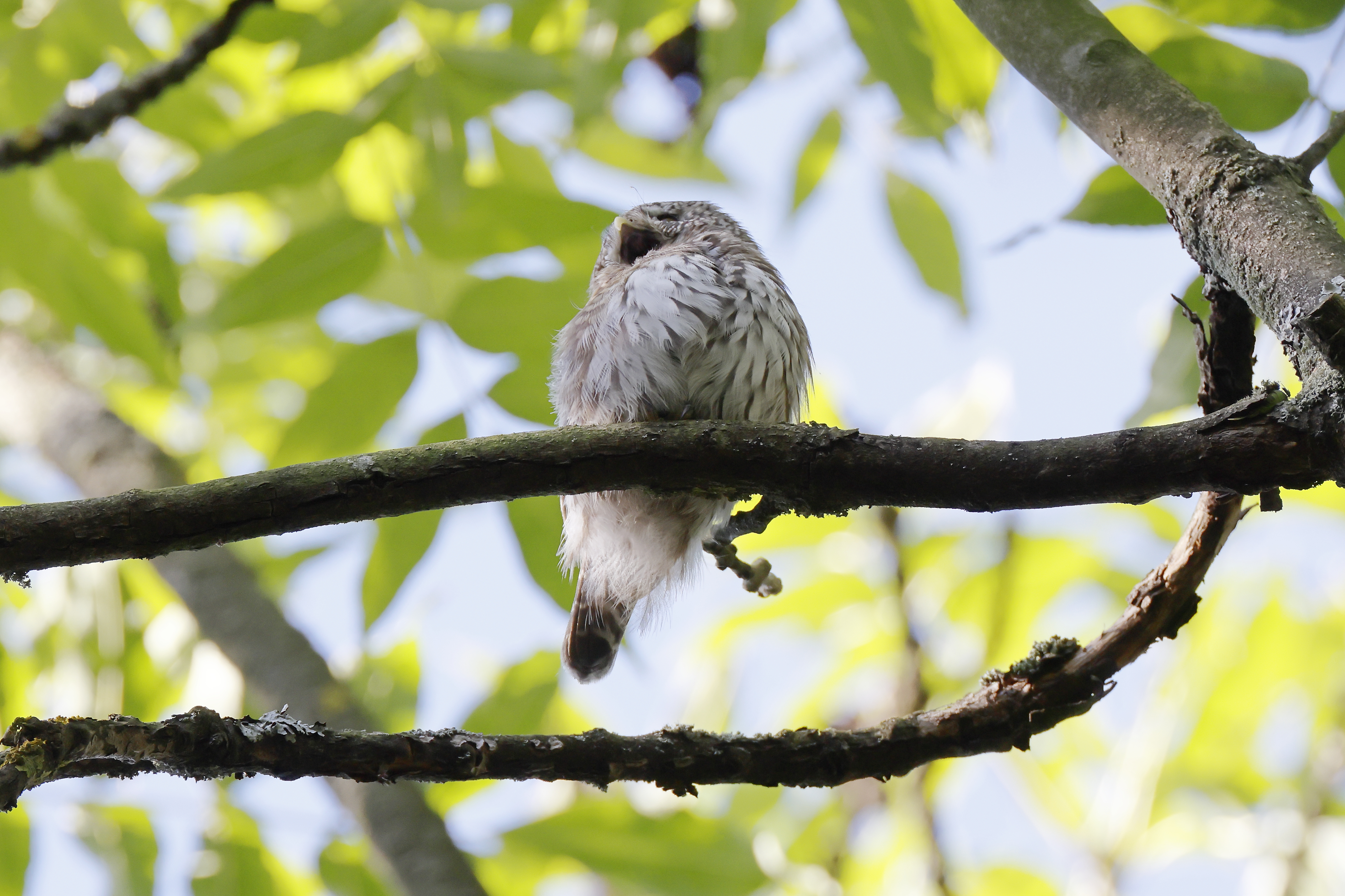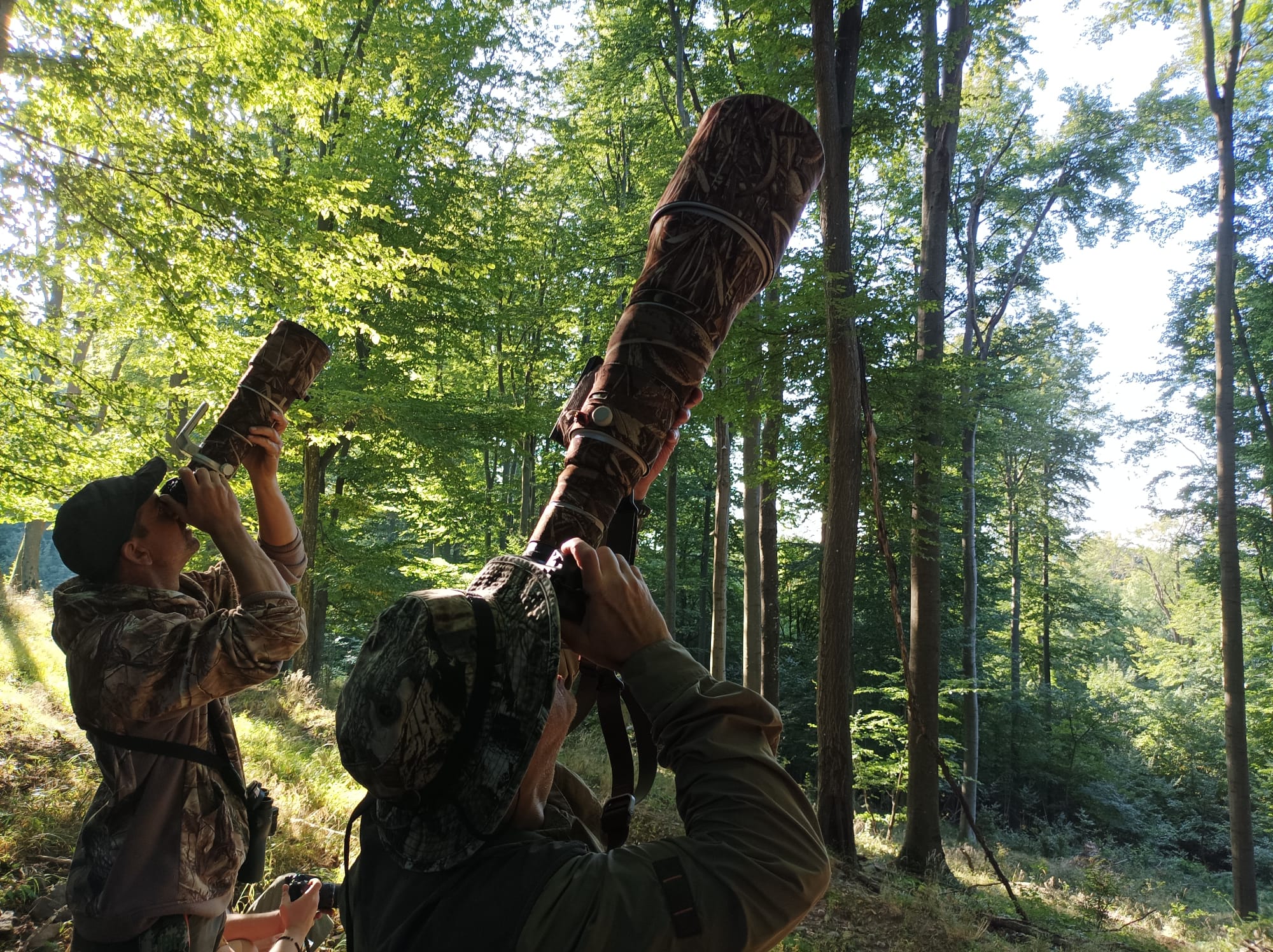 Jó egy óra elteltével aztán megszólaltak a baglyok, először egy, majd mindkettő, így már "csak" meg kellett találni őket a toronymagas fák ellenfényes lombkoronájában.