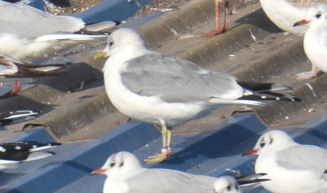 Öreg dankasirály színes gyűrűvel a Győri szeméttelepen, amely 2021 februárjában Győrben lett jelölve és 3 évvel később ugyanott került leolvasásra (Fotó: Pitó Andor).