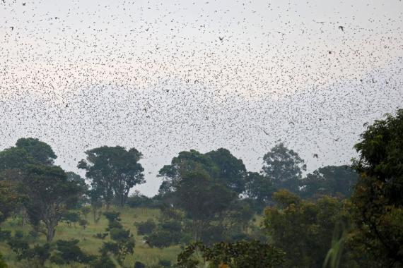 Gyülekező kék vércsék Angolában (Fotó: Novák Laszló)