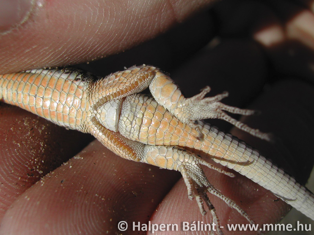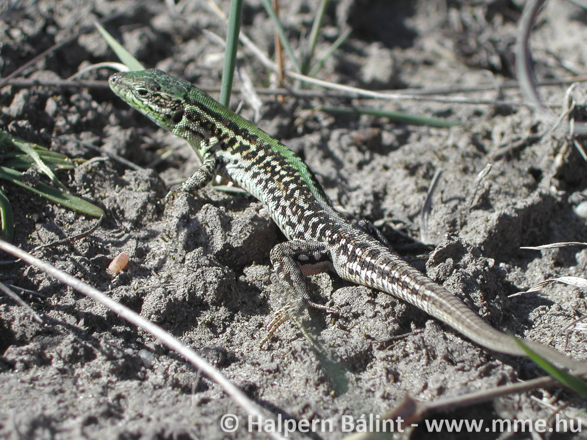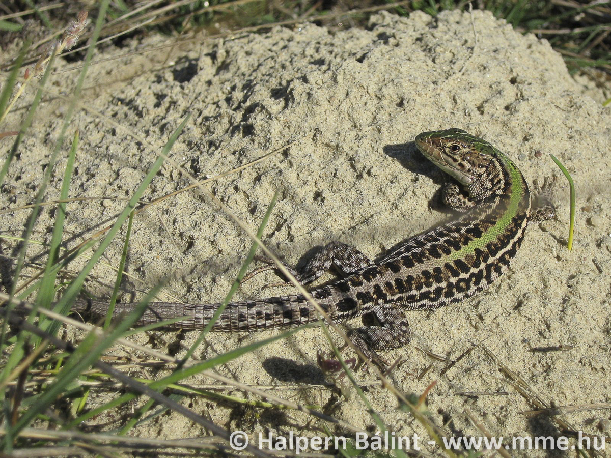 A homoki gyík talán a legszebb, egzotikus színezetű gyíkfajunk. Testhossza 6-8 cm, a farka a testhossz kétszeresét is elérheti. A hímek hátának közepén egy világoszöld sáv fut végig, amely a nászidőszakban élénkebb, később sötétebbé válik. A zöld sávot mindkét oldalon egy-egy barna, a szélein csipkézett, a testoldal felső részét is magában foglaló sáv határolja. A barna sávok nem egyenletesen barnák, hanem sötétebb és világosabb pettyekből, foltokból állnak össze. Mindkét barna sáv közepén, a hát oldalsó pereme mentén, fut egy vajsárga vagy krémszínű, ugyancsak hullámos vagy csipkézett szélű csík. A testoldal hashoz közeli felén fekete-(piszkos)fehér, márványos vagy pettyekből álló minta látható. A has piszkosfehér, nászidőszakban narancsvörös. A nőstények mintázata nagyon hasonló a hímekéhez, de a barna sávok és a világos csíkok jóval kevésbé csipkézettek, a pettyek és foltok kevésbé kontrasztosak, emiatt lényegesen egyszerűbbnek, fakóbbnak tűnik. A zöld sáv is kevésbé élénk, gyakran barnába vagy bézsbe hajló. Hasuk piszkosfehér. A fiatal egyedekről gyakran hiányzik a zöld, hátközepi sáv.