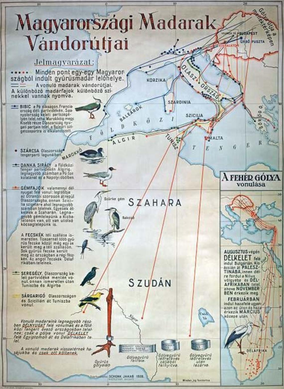 Schenk Jakab iskolai falitérképe a madárvonuéásról, 1928.
