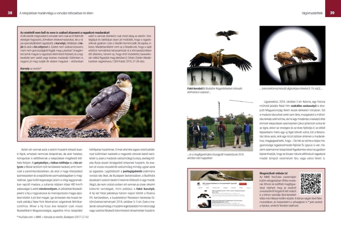 Az MME szóvivője által írt és a Cser Kiadó gondozásában megjelent hiánypótló könyv célja a Magyarországon is mind népszerűbb távcsöves madármegfigyeléssel most ismerkedők, megismerkedni szándékozók segítése a felszerelés kiválasztásában, a madárhatározó használatában, a települések madárvilágának megismerésében.