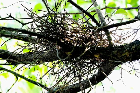 Az örvös galamb előző év fészke, a költés és az időjárás viszontagságai ellenére