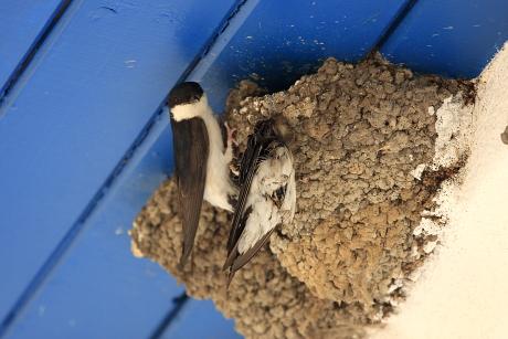 | Madárbarát panel alig 1 m²-es erkélye molnárfecske műfészkekkel, B típusú odúval, ... |